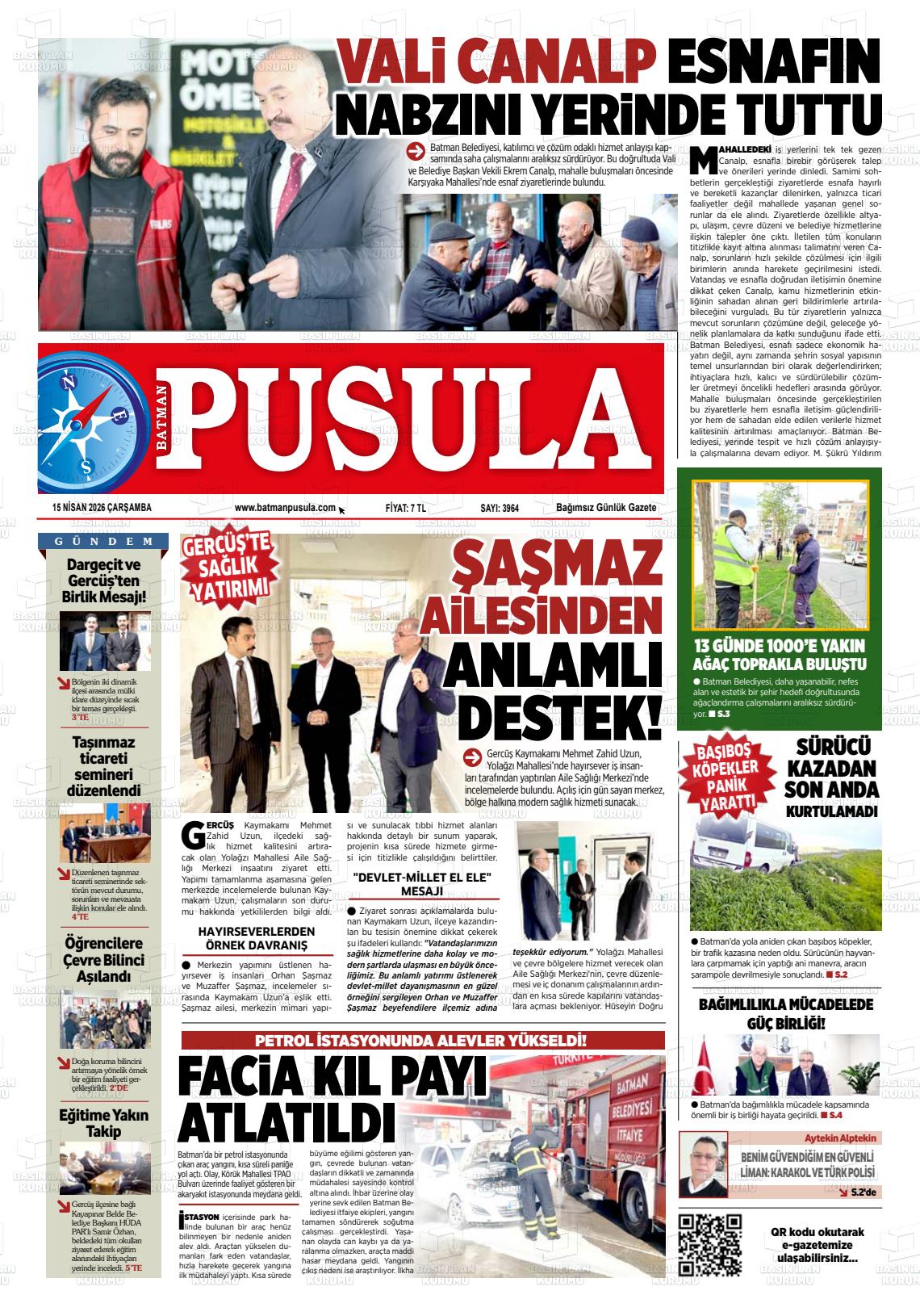 Batman Yerel Gazeteleri 15 Nisan 2026, Çarşamba Günü Manşeti